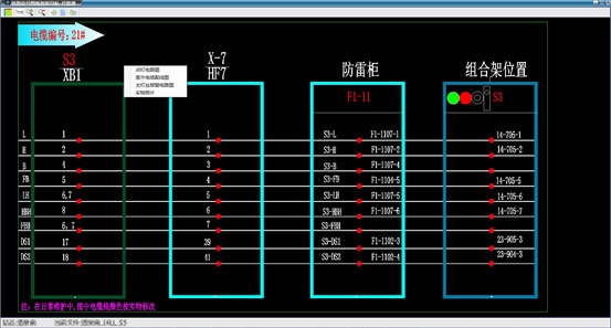 該系統可設計、繪制出規(guī)范的電纜徑路圖,并對完成的電纜徑路圖進行自動識別,如各條主電纜的徑路結構、箱盒類型、連接設備的